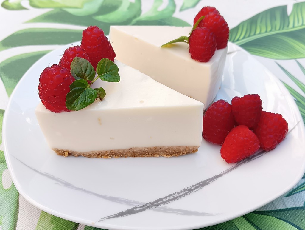 El otro día estaban de oferta en el supermercado las frambuesas y compré un paquete. Pensé en hacer una tarta de queso sin horno y busqué varias recetas. Algunas de ellas coincidían en utilizar cuajada para que adquiera consistencia. En lugar de gelatina, que es el ingrediente que acostumbro a usar, le añadí cuajada, que tenía algunos sobres en casa. Para mi sorpresa, el sabor final no era como el que esperaba de queso, sino que priorizaba la leche. Si os gusta la cuajada y los lácteos, podéis probarla. Os recomiendo comerla con un poco de miel, que le aporta un toque dulce y combina genial.