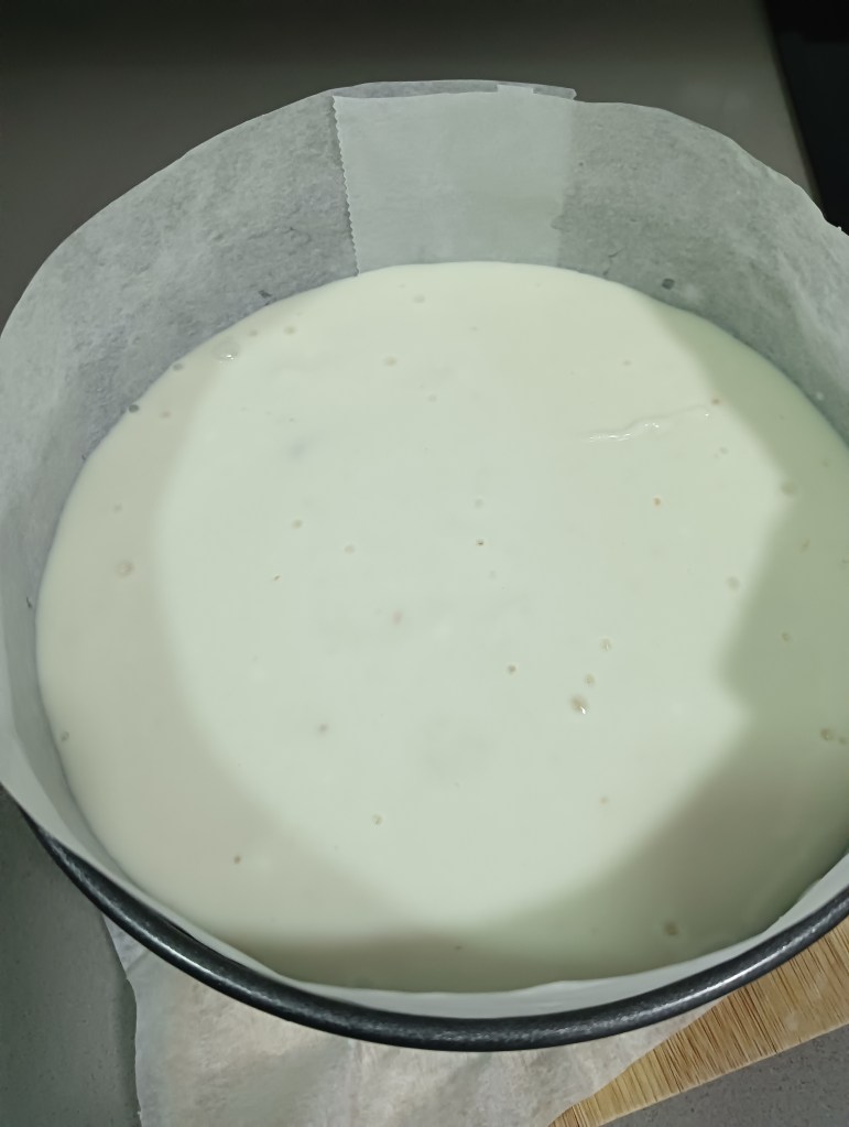 -luego, vertemos el relleno encima de la base que teníamos enfriando en la nevera