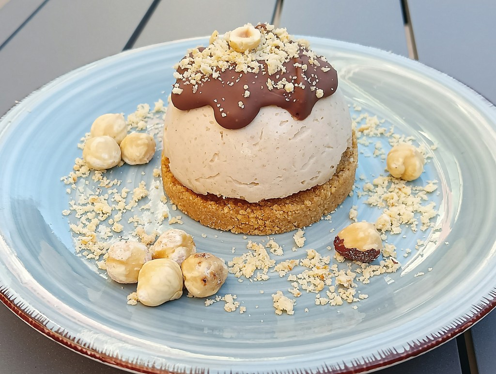 -para decorar, podemos fundir un poco de chocolate de cobertura y verter por encima (queda una capa dura). También le podemos añadir por encima avellanas trituradas. Otra opción es preparar una ganache (para que sea una cobertura más cremosa): mezclamos la nata (caliente) con el chocolate y mezclamos bien