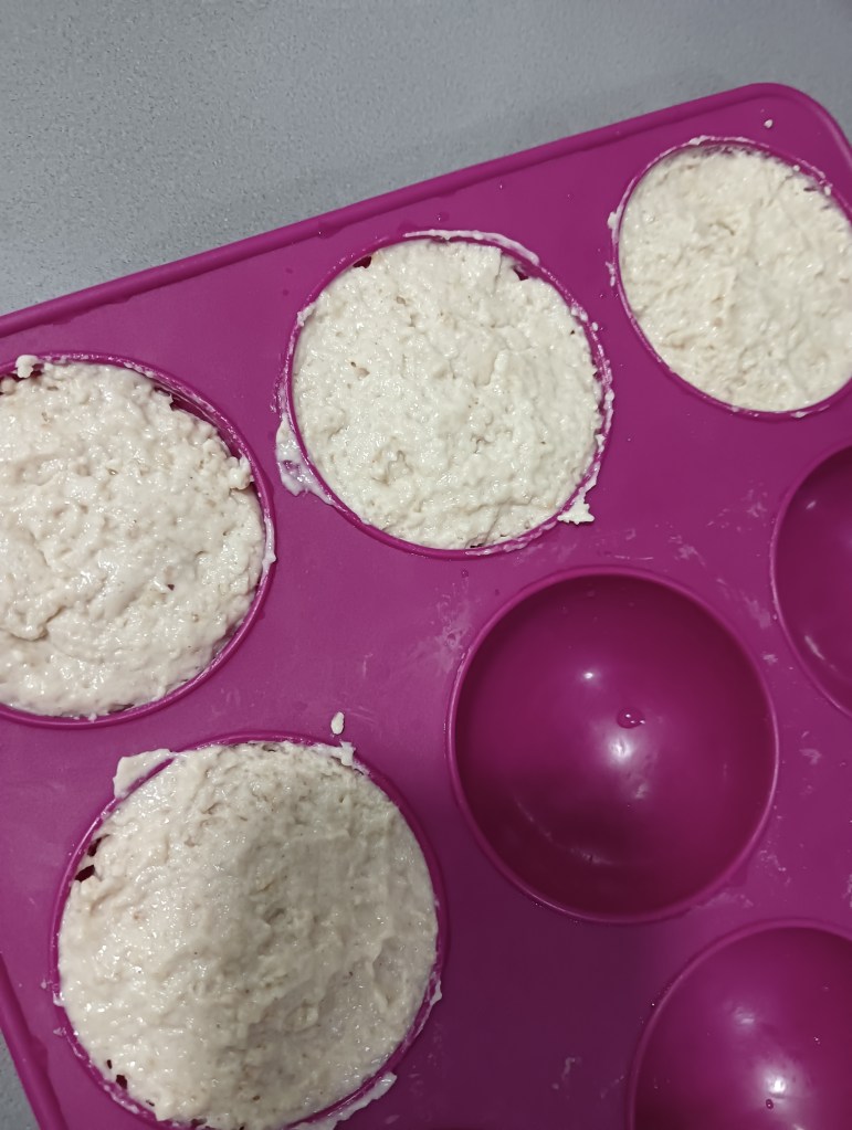 -rellenamos el molde de semiesferas y dejamos enfriar en la nevera. Unas horas antes de servir, yo las congelo para que sea más fácil de desmoldar y luego las dejo en la nevera antes de comer para que no estén congeladas