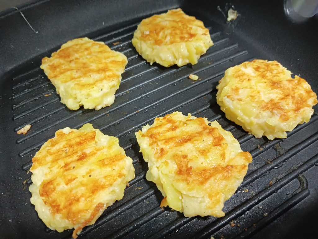 La otra noche quise preparar un acompañamiento diferente para cenar. Con ingredientes que tenía en casa y en un momento, ya que no quería enredarme, preparé estos bocaditos de patata y queso, que quedaron buenísimos. Con las cantidades de esta receta tenéis acompañamiento para tres personas. Es tan sencillo como cocer las patatas al microondas, chafarlas y mezclar con queso rallado y un huevo. Luego las cocinamos en la sartén y ya lo tenemos listo. Os animo a hacerlas en casa.