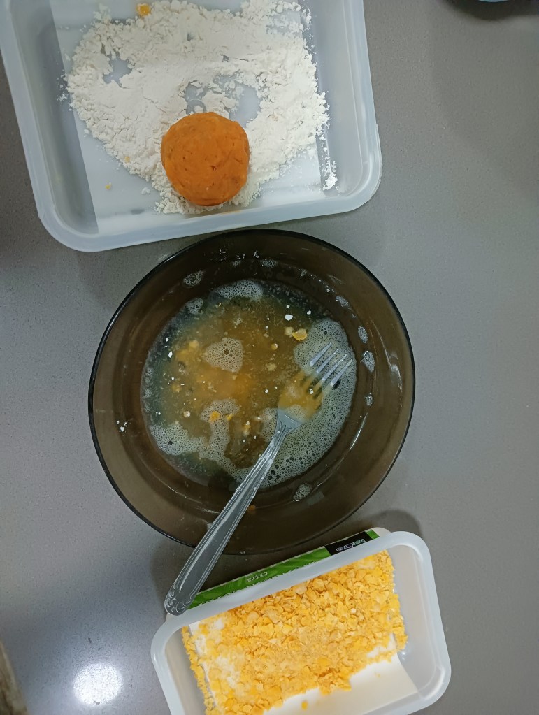 -salpimentamos los boniatos al gusto y cogemos porciones para hacer bolitas