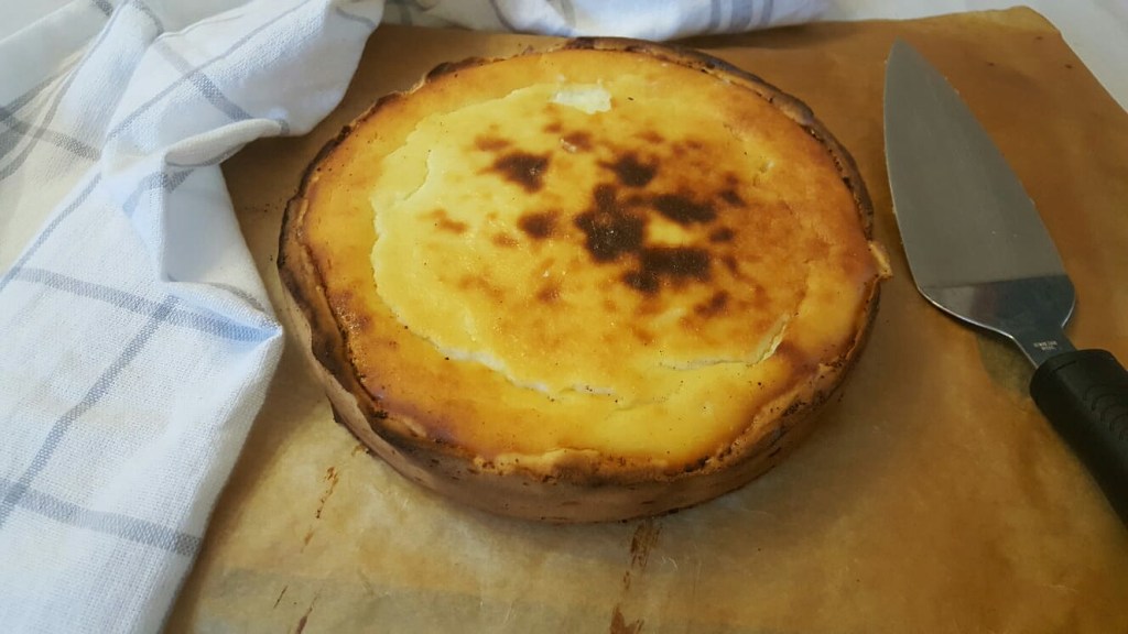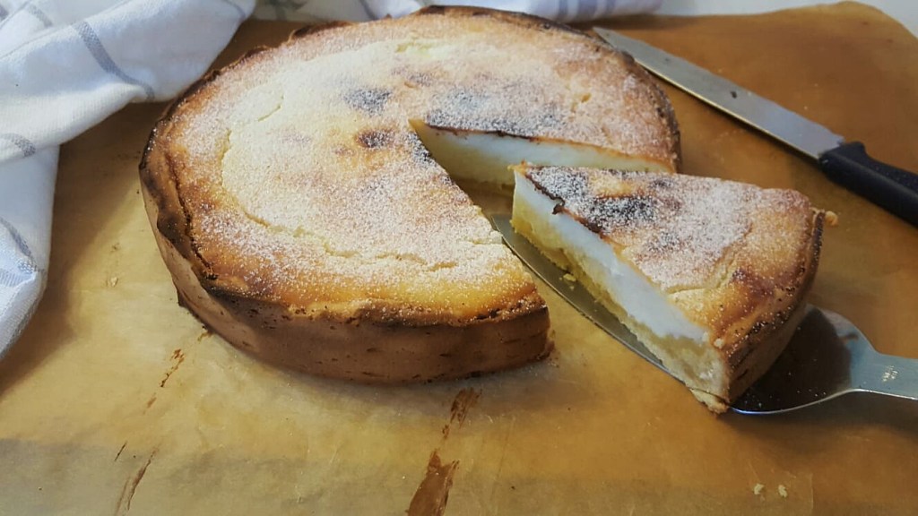Esta receta se puede decir que ha sido de aprovechamiento, ya que la preparé con la excusa de acabar un poco de queso ricotta que tenía en la nevera. Aunque al final he tenido que comprar más para hacer la tarta, ha sido la oportunidad de probar una receta dulce nueva. Ya habíamos preparado en alguna ocasión tarta de queso, que nos gustan mucho, así que nos hemos arriesgado con el queso ricotta. Es un postre muy suave, que se puede acompañar con mermelada por encima, pero nosotros nos la hemos comido tal cual, solo espolvoreada con un poco de azúcar glas por encima. De apariencia muy rústica y de sabor suave y esponjosa. Hemos preparado también la masa, aunque es un poco pegajosa y no las tenía todas conmigo. Nosotros la hemos hecho en un molde desmoldable, ya que además de la base, hemos levantado también los bordes de galleta.
