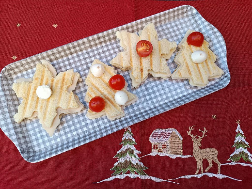 He aprovechado que ha venido mi sobrina a casa y también le gusta cocinar para hacer este aperitivo que nos ha parecido muy original para hacer en estas fiestas navideñas. Hemos utilizado unos moldes que tengo en casa con forma de estrella y de árbol para hacer estos bikinis originales navideños. Podéis utilizar los ingredientes que más os gusten para el relleno y darle la forma que queráis.