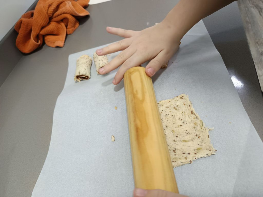 -luego, con la ayuda de un rodillo, chafamos para dejar finitas las láminas de pan de molde
