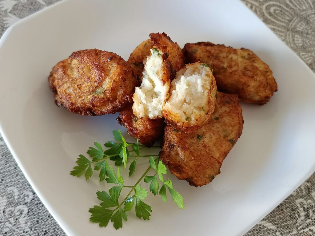 Mi madre hizo esta receta que vio de Karlos Arguiñano y ha tenido mucho éxito. Tanto que he querido repetirla y prepararla juntas para apuntar bien las cantidades, ya que es muy sencilla y buena. Es de aprovechamiento y le podemos añadir los ingredientes que más nos gusten: atún, jamón… Yo los he hecho solo de bacalao, que se mezcla con pan, leche, huevos y se aliña con ajo y perejil. De aspecto parecen croquetas y de sabor similar a los buñuelos de bacalao. Es un plato sano y sabroso, que se prepara muy rápido, ya que solo hay que mezclar los ingredientes y dejar reposar la masa, para luego hacer porciones y freírlas. Con las cantidades que os indico salen entre 25-30 unidades, dependiendo del tamaño.