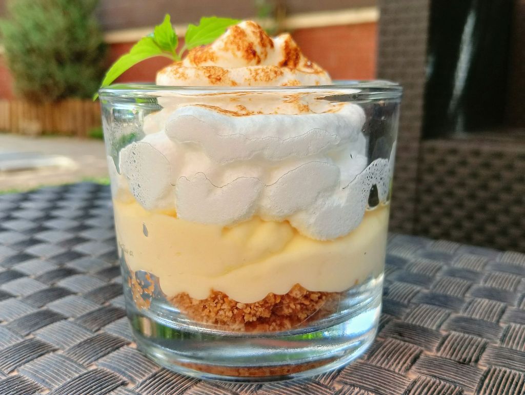 Me encanta la crema de limón (lemon curd) y cuando tengo ocasión intento hacerla para algún postre (tarta, lemon pie, relleno de postres…). En esta ocasión he aprovechado que tenía crema que me sobró de hacer unos limones rellenos caramelizados y pensé en hacer una versión de lemon pie en vasos, con una base de galleta y mantequilla, crema de limón y merengue, una combinación buenísima. He optado por hacer merengue italiano y ha quedado bastante bien.