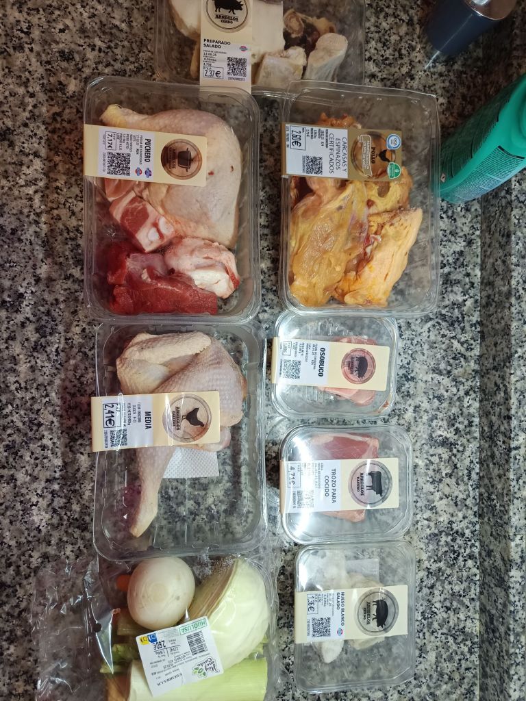 Este fin de semana he querido aprender cómo prepara la sopa mi madre, ya que le queda buenísima y nos encanta tener tuppers para cenar entre semana. Hemos preparado una olla grande (unos 5l), que nos da para congelar tuppers para todo el mes. Mi madre compra todos los ingredientes en el supermercado, que ya vienen preparados para hacer caldo y nos facilita la compra. En los ingredientes pongo las cantidades de los paquetes, pero es muy versátil. Además de la sopa, luego ellos se comen la carne, que también se puede utilizar para hacer croquetas.