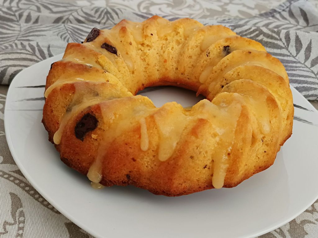 -mientras se hornea, preparamos el glaseado de naranja. Es tan sencillo como colocar azúcar glas en un bol e ir añadiendo poco a poco zumo de naranja hasta que tengamos la textura que queremos para verter por encima del bizcocho cuando esté frío (podemos hacer la cantidad que queramos para cubrir toda la superficie de la tarta)